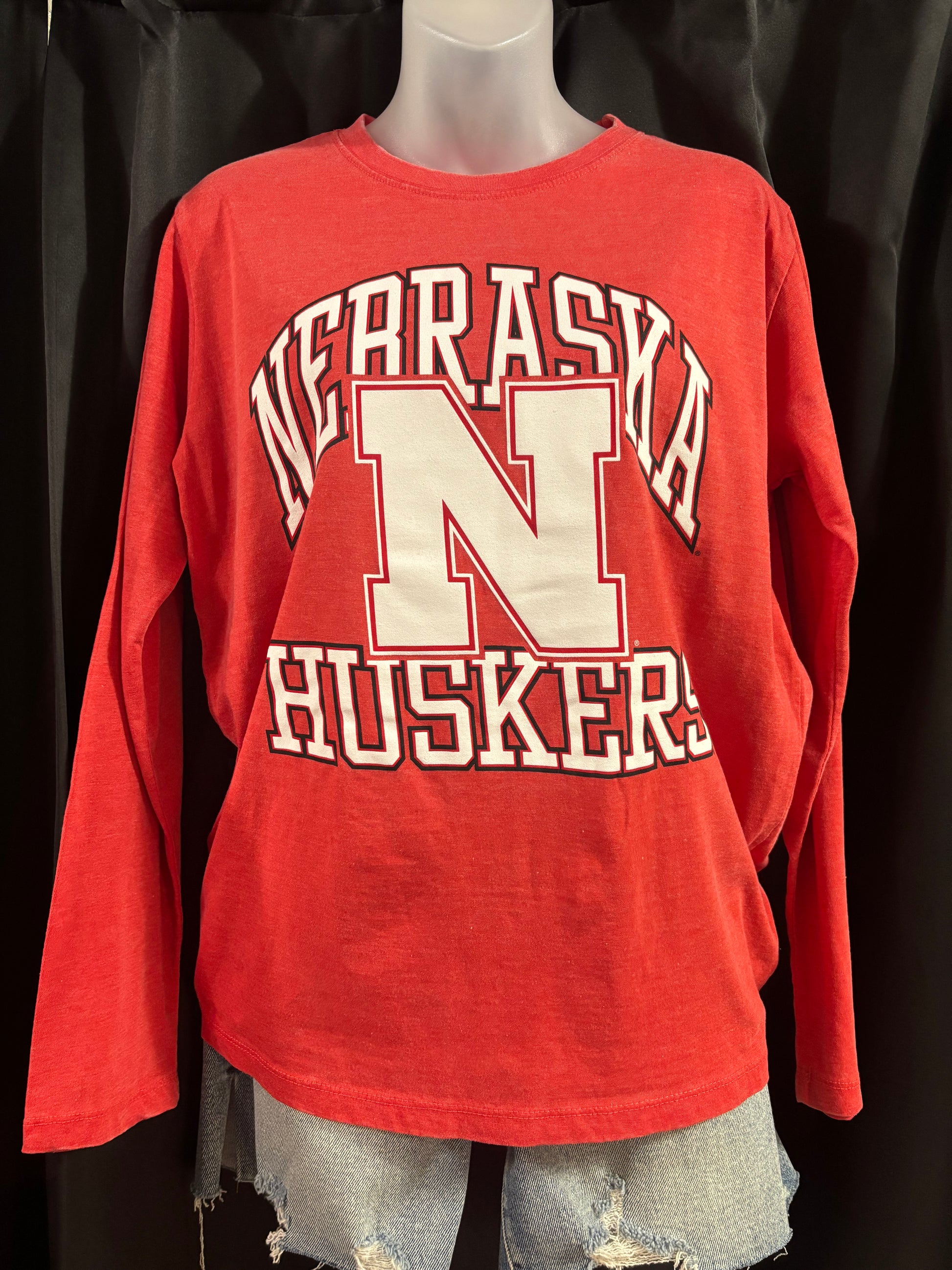 Nebraska Wayne Long Sleeve Loose Fit Vintage Tee